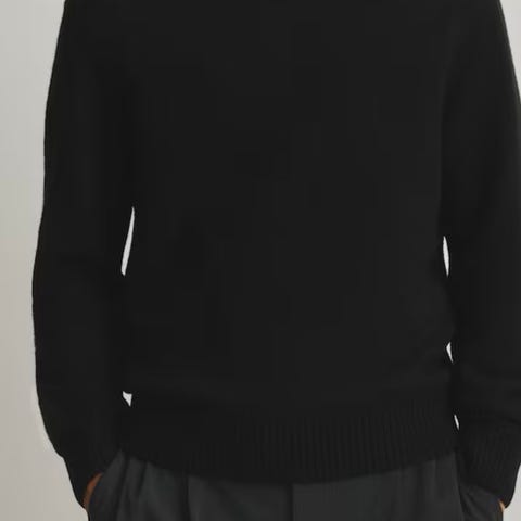Høyhalset strikket genser fra Tiger of Sweden i finstrikket merinoull. Sort. Ribbede mansjetter og ribbet hals. Når ned til hoften