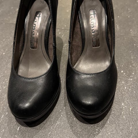 Lekre skinnpumps fra Tamaris selges. Str 40, med gull lenke rundt anklene, 10 cm høy hæl. Aldri brukt, de ble dessverre for små.