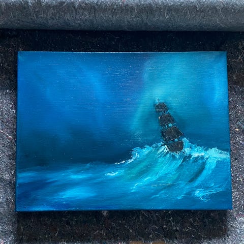 Bildet kan sendes i posten i en eske som beskytter bildet. .