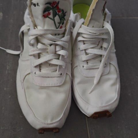 Nike Dbreak SP i fargen topaz gold/cedar-lemon wash i str. 41 (26 cm). Skoenes "upper" er nesten gjennomsiktig.