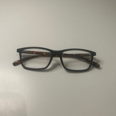 En superlett brilleinnfatning fra YOU MAWO. Man kjenner knapt at man har de på seg. Kjøpt på drecker design i Tromsø. Anslår størrelsen på brillen til ca str. på 48-49, da det er det jeg må ha alle brilleinnfatninger i. De her laget i en slags 3D maskin. Innfatningen ble aldri tatt i bruk da jeg syns de ble for mørk til meg. Brillen har mitt navn inngravert i ene armen, og på etui (se bilder der jeg har skjult navnet mitt). Dette kan nok ganske lett fjernes med en tusj eller noe i brillen siden det bare er tekst. Etuiet er det trykket inn i. Brilleinnfatningen kostet 4500 ny.