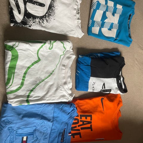 Trenings t-shirt . Liten nupp/tråd på grønn og blå . Lite brukt