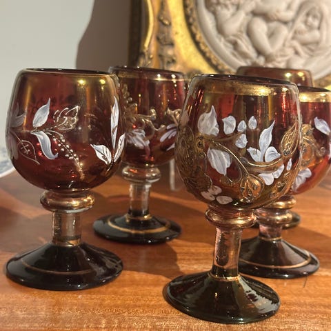 Hele og fine med noe slitasje i gulldekoren se bilder. H 12 cm D topp 3,5 cm