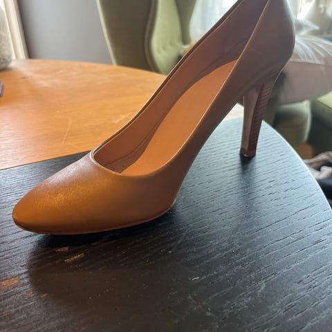 Roots, høyhælte pumps i lys brun/lys mocca farget semsket skinn.