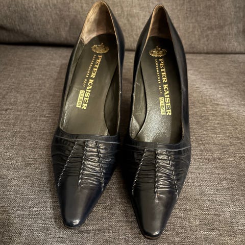 Bruuns Bazaar sort skinn pensko med høy hæl.