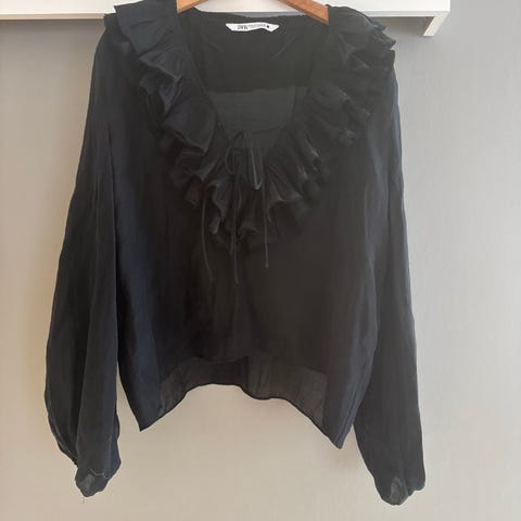 Zara Bluse Hvit XXL Transparent Stoff