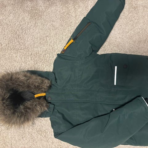 God og varm vinterjakke fra Name it ,brukes til begge kjønn str 128 .farge mørk blå . Pent brukt like fin .Selges for 150kr sendes via fiks ferdig