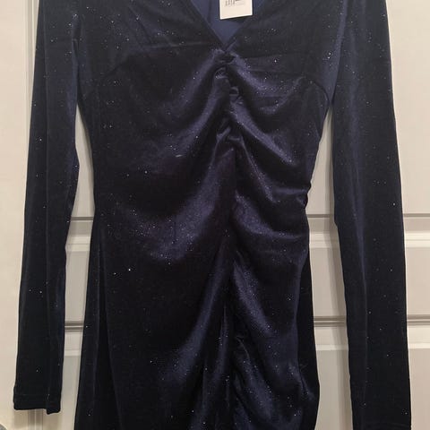Ny blå velour kjole fra KappAhl str S med strammesnorer i venstre side.