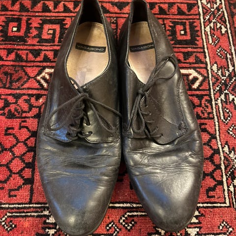 Pene skinnsko med gjennomsiktig hel, pent brukt kjøpt for 4300