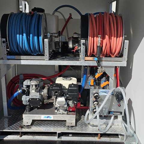 Denne kommer med dieselmotor og hele 150bar 25L/min i vannmengde.