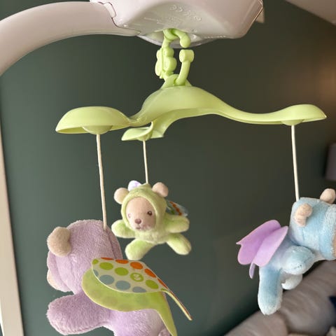 Søt karusell med musikk og roterende figurer, perfekt for å underholde og berolige babyen.