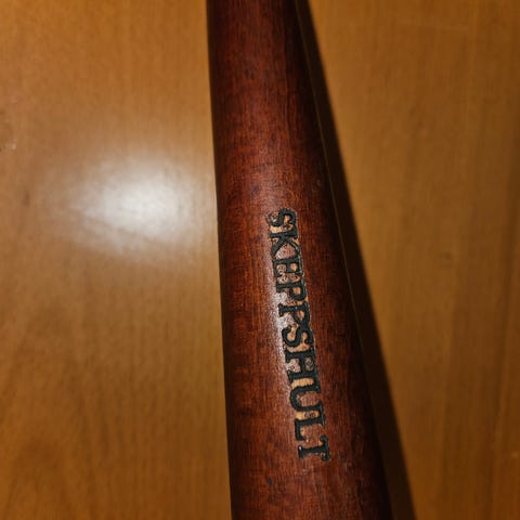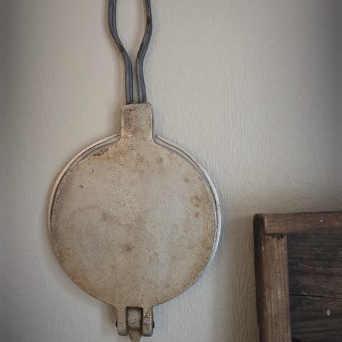 Den ble brukt 3-4 ganger. 6 talerker, 6 gafler, 6 skjeer, en brenner, støpejern kjele med lokk for å holde galer på plass.