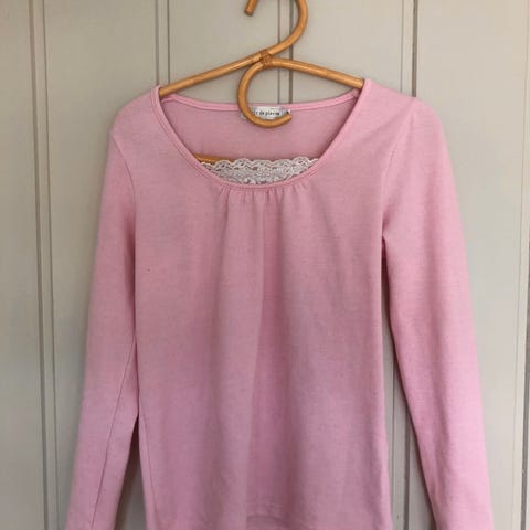 Søt genser i tynt stoff, med blonder. Nesten ikke brukt.