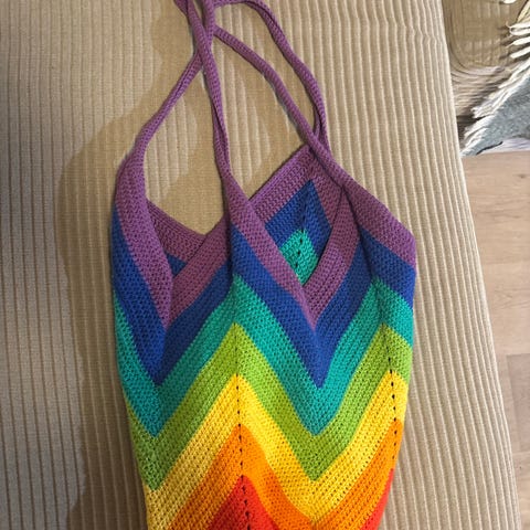 Brodert strikket heklet sommer sommerveske Strand strandveske håndstrikket håndveske skulderveske håndhevd vevd
