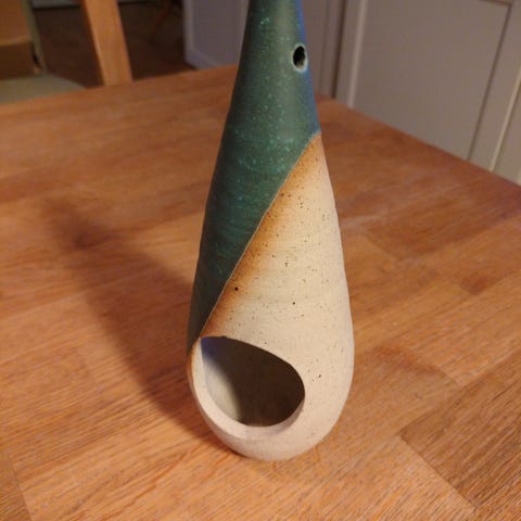 Lyslykt, keramikk/steingods. Lekker, flott, veldig god kvalitet, den store, ca. 18 cm høy. Nærmest ubrukt. 80 kr.