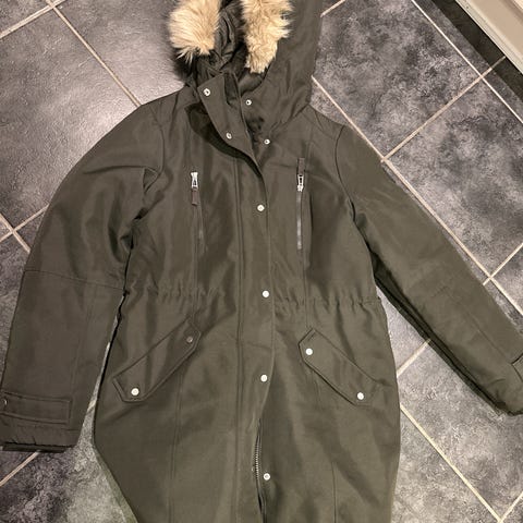 Selger denne varme vinterjakken fra ONLY i størrelse L, da den dessverre bare blir hengende i skapet. Noe kortere modell - tykk og god. Mørk grønn med grålig undertone.