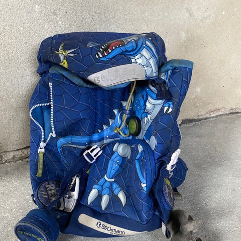 Liten skolesekk/gymsekk fra Beckmann. Litt slitasje nederst i kanten. Se bilde. Holder nok fint ett eller to år til for et skolebarn.