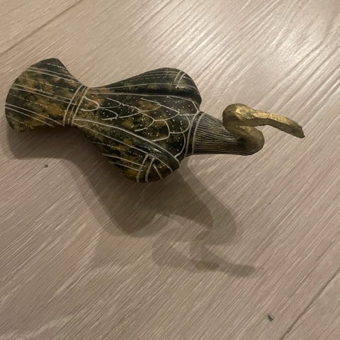 Pen liten håndlaget flodhest,gammel, skåret ut i sten. Lengde ca 12 cm.