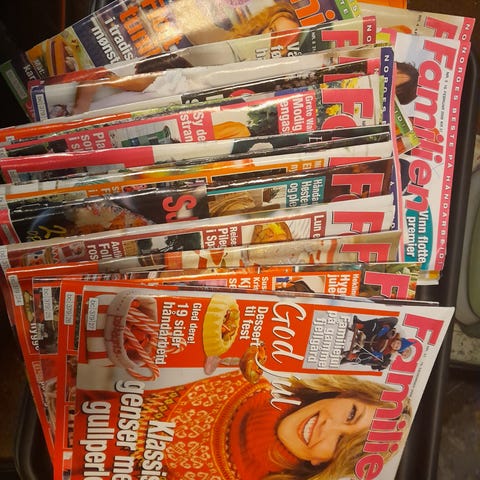 Har rund 100 blader av ukebladet familien.