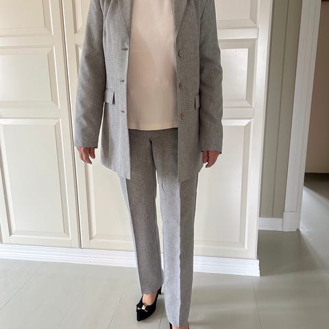 Grå rutete blazer fra Designers Remix i str 38 selges. Oversized modell. Brukt en gang.