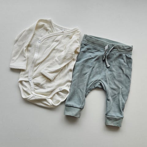 Pent brukt ribbestrikket sett med body og bukser i behagelig og lett ribbestrikket bomull. Den danske produsenten Mar Mar har klær av veldig god kvalitet. Ny pris er 659 kr for settet. Noen bruksmerker, generelt i god stand. Str 4 mnd.