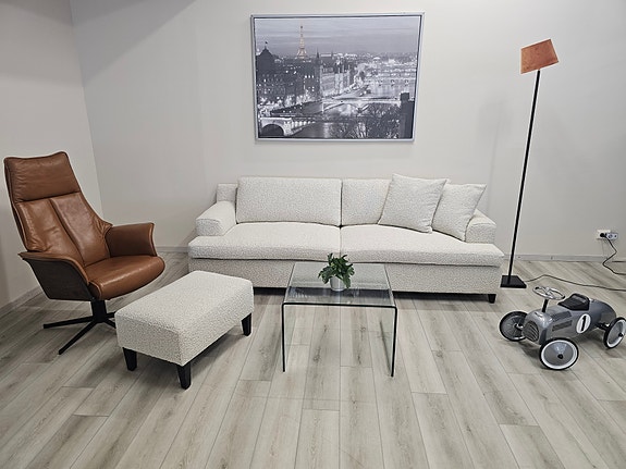Vi har et 500kvm showroom på Furuset (nærme Ikea) med et stort utvalg av sofaer til enhver tid.