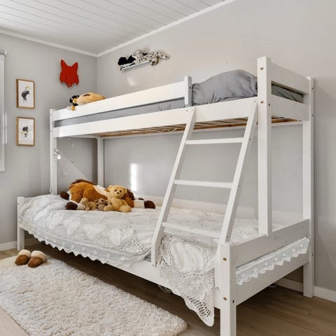 Veldig god og praktisk barneseng, opprinnelig kjøpt på Bohus for ca 8 år siden. Solid og stabil konstruksjon av høy kvalitet. Sengen kostet i sin tid godt over 10.000 kr. Forelengere kan tas av, slik at sengen også kan settes direkte på gulvet.