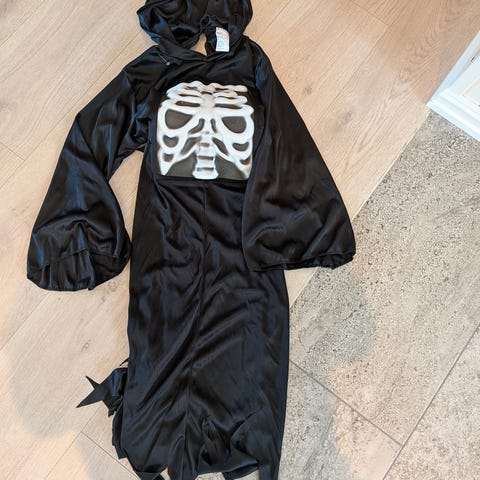 Hjerte er utenpå med en pumpe som pumper opp hjertet Drakt med hette og netting foran ansiktet.Str 5/6 år.😀