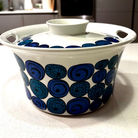 Blå terrin med lokk fra Figgjo