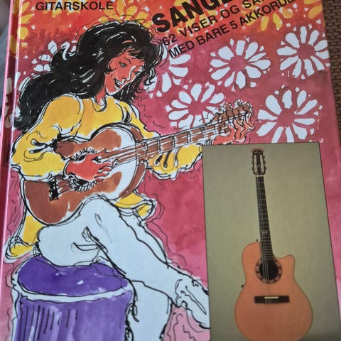 Selger en meget pen innbundet bok med tittelen: "Gitarboka mi! 1"
