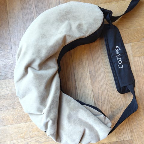 Har et kraftig belte og en lydløs spenne som festes rundt midjen på mor. Barnet vil da unngå å skli ned mellom mors mage og ammepute.