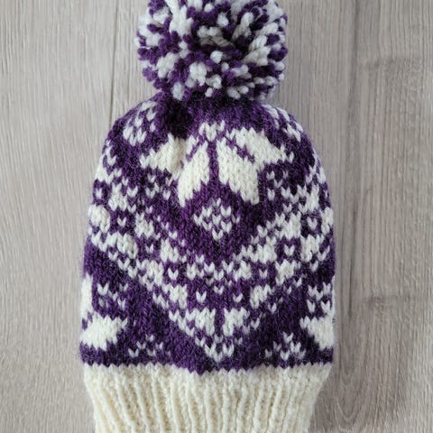 Håndlaget vinterlue, ull, passer fint til barn og voksne.
