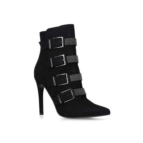 Crafted from super soft black suede, they have an almond-shaped toe, a slim platform sole and an elegant stiletto heel.