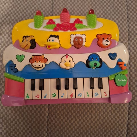 Kjempegøy keyboard som skal ligge på gulvet. Man kan gå eller bruke hendene på det. Lager rytme og musikk og man kan velge mellom ulike lyder. Passer fra 2-3 år og oppover. Koster nytt mellom 500-1000,-