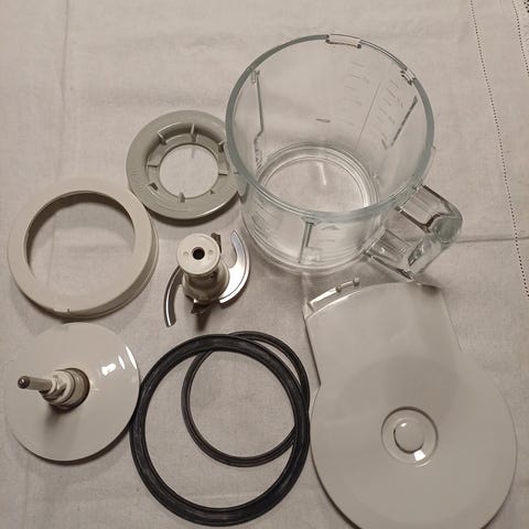 Mange deler som gjør matlagingen enkel og grei. Bla blender, forskjellige kutteredskaper , juicepresse, visp med flere.
