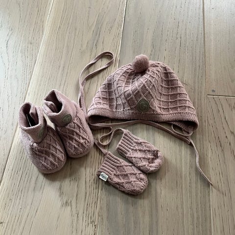 MarMar Copenhagen Baby lue og sokker i Modal og bomull, selges for 150,- kroner. Ikke brukt, fremstår deretter uten noen form for anmerkninger. Tynn og fin lue for den første nyfødt tiden. Nypris er 450,- kroner.