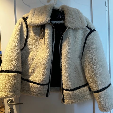 Kjempesøt jakke fra Zara i størrelse S-M. Lommer på hver side samt en brystlomme. Jakken er veldig pent brukt og i god stand. Den ene knappen er litt løs, men det følger med en ekstra knapp dersom man trenger å sy på en ny.