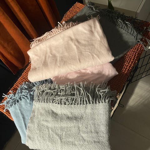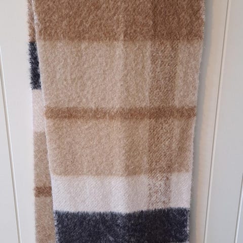 Vinrødt skjerf i Islands ull, kjøpt på Island