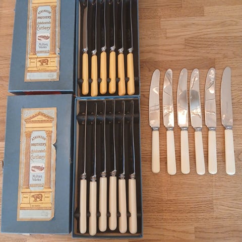 3 store middagskniver, 24 cm, med Sheffield stål knivblad.