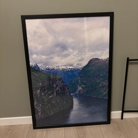 Stort fint bilde av Geiranger fjorden. 150x100 Bildelist oppe og nede.