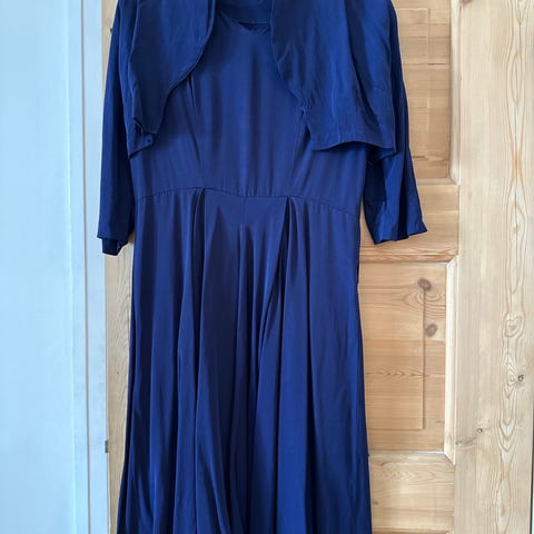 Det var « husets sydame « som sydde denne for fru Pettersen på -60 tallet. Kjolen er foret med matchene grå-blått silkefor, som følger kjolens lengde. Den er rett og slett en sjelden « skatt « ! ⭐️⭐️