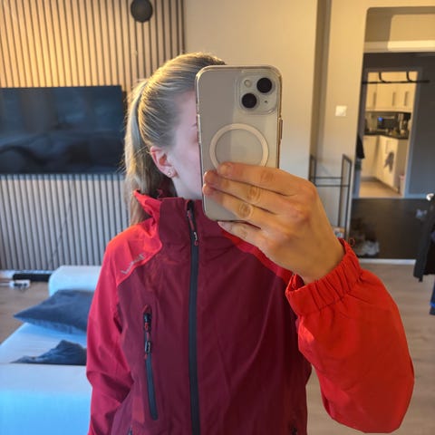 Selges fordi den er litt for kort i ermene for meg, som har lange armer.
