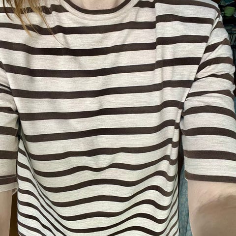 Søt, stripete t-skjorte (noe croppa, rundt str. M)