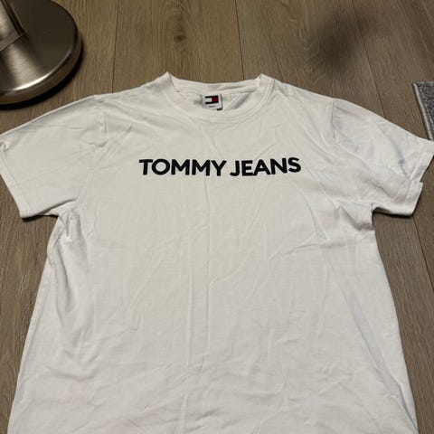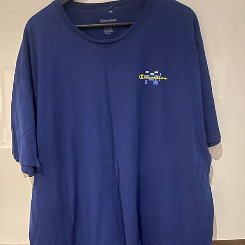 Fin Champion T-skjorte i large. Det er noen gule flekker her og der, men dette kan sikkert fjernes med flekkfjerner? Ingen bruksmerker utenom disse gule flekkene som vises på bildet👍🏼