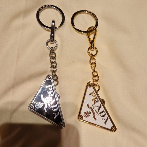 Vintage Prada Nøkkelring i metal med emalje selges for 1800 nok. Robot er circa 5 cm høy og totalt høyde er 9 cm. Veldig søt og fin som gave