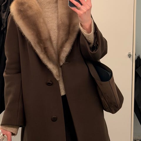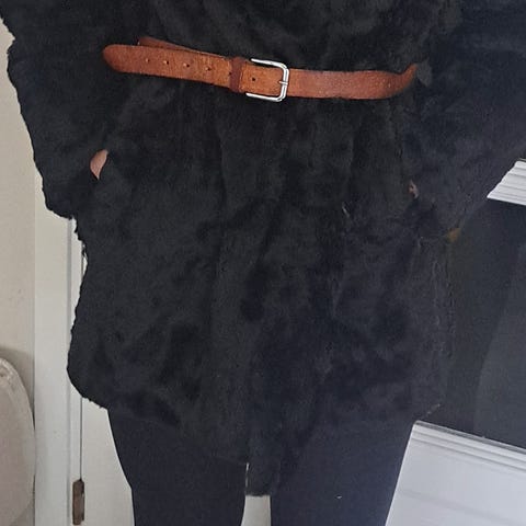 Flott sort lang jakke i fuskepels og ser ut som persianer pels, selges.