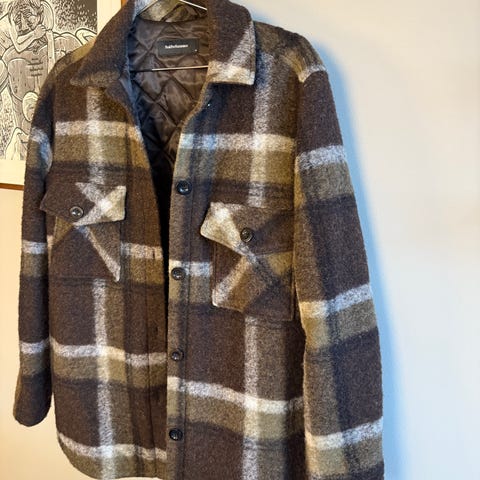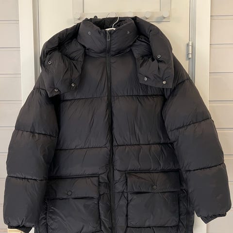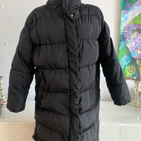 Kåpe/jakke med hette (Bik Bok), str. S; fin stand:) ingen flekker eller skader; innside i imitert sauseskinn, ytterstoff - vannlig stoff, ikke imitert skinn; 100% polyester;