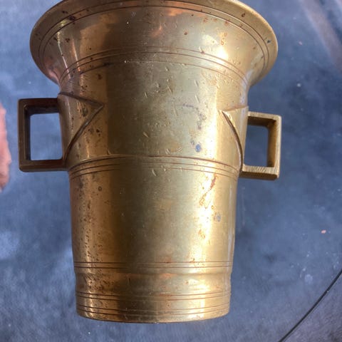 Selger en stor eldre Messing Morter.
