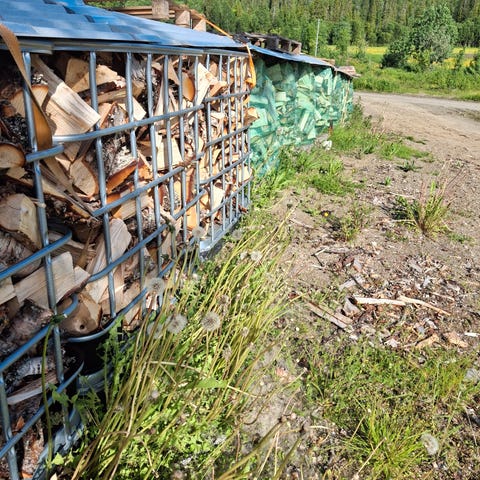 kløyvd i mai 24, ligget under tak siden.
