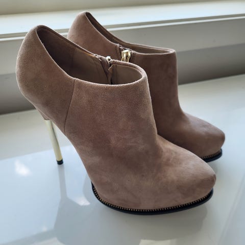 Jeg selger mine høye hæler, brukt en gang, i skinn str 38.